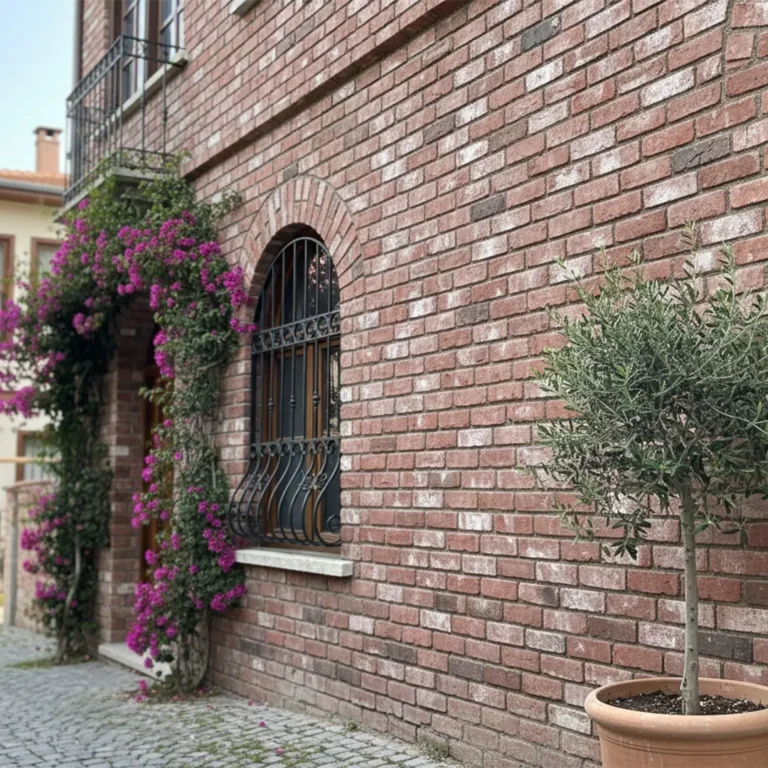 Özenle tasarlanmış tuğla yüzeyi.