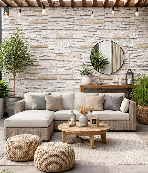 Doğal taş dokusundan ilham alan yüzeyler.